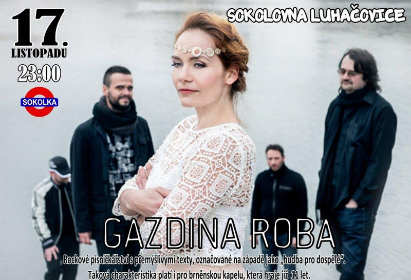 Koncert / Sokolka žije! / GAZDINA ROBA Datum konání: 17. 11. 2017 Čas konání: 23:00 Místo konání: Sokolovna, Sokolovna Vstupné: Hudba Rockové písničkářství s přemýšlivými texty .