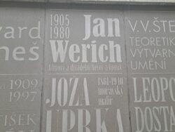 Pro pořádek: jsou tu zvěčněni například prezidenti Masaryk či Beneš, spisovatelé, hudební skladatelé, malíři, herci. Mimo jiné například Milan Rastislav Štefánik, Alois Jirásek, Leoš Janáček, Oldřich Nový, Jan Werich, Vlasta Burian, Alfons Mucha, Joža Uprka či Dušan Jurkovič. Ale také další osobnosti, zakladatelé lázní Otto Serenyi, František Veselý a mnozí další.