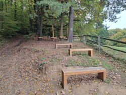 Docela náročný sešup nás svádí k velkému mysliveckému posedu, unikátnímu dětskému hřišti z dřevěných prvků (klobouk dolů před tvůrci) a naráz jsme na pohodlné asfaltce.